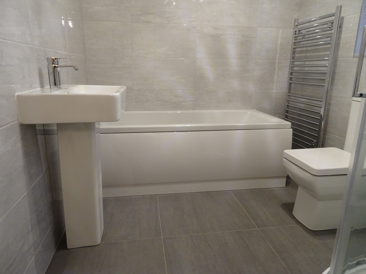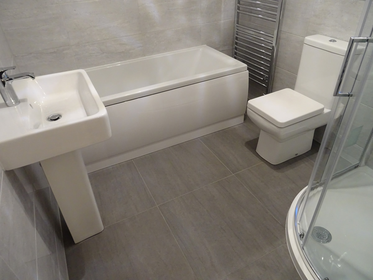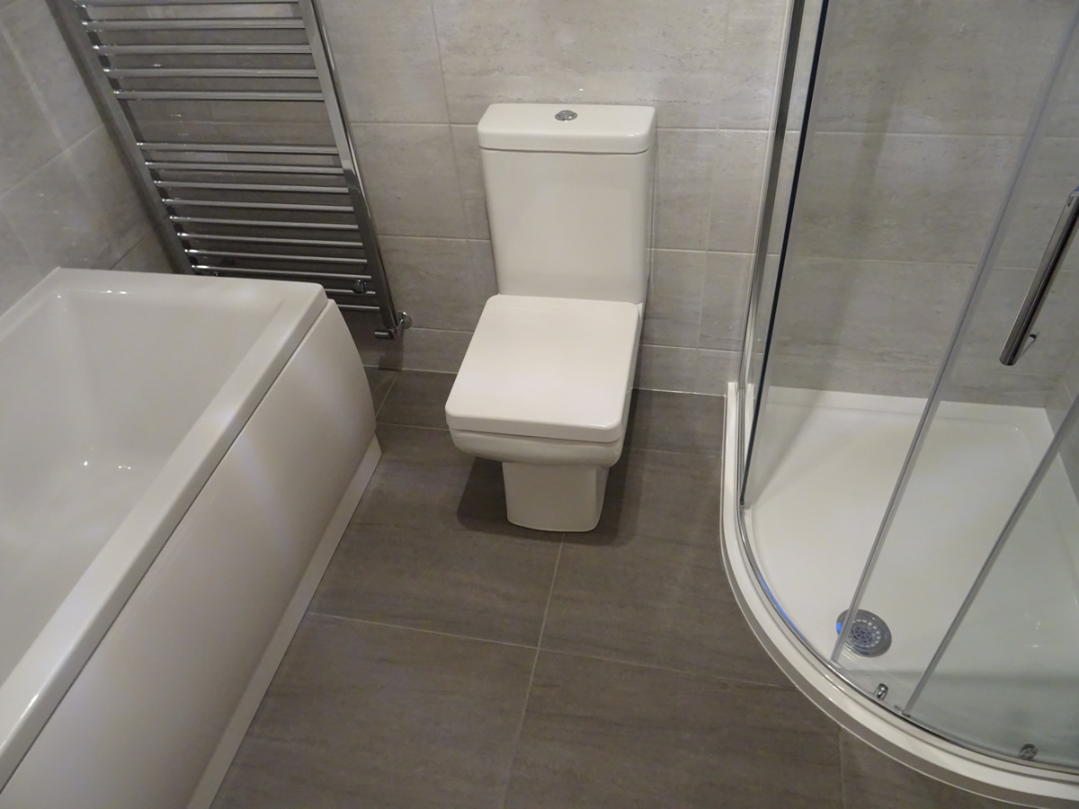 The only change to the bathroom is the shower enclosure. We were able to provide a larger shower enclosure and better access around the shower enclosure to the toilet. This was achieved by fitting a 100cm by 80cm offset quadrant shower. The image below shows the new bathroom design that was ultimately fitted.
