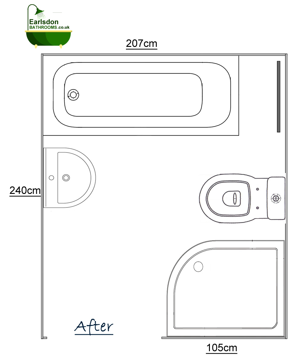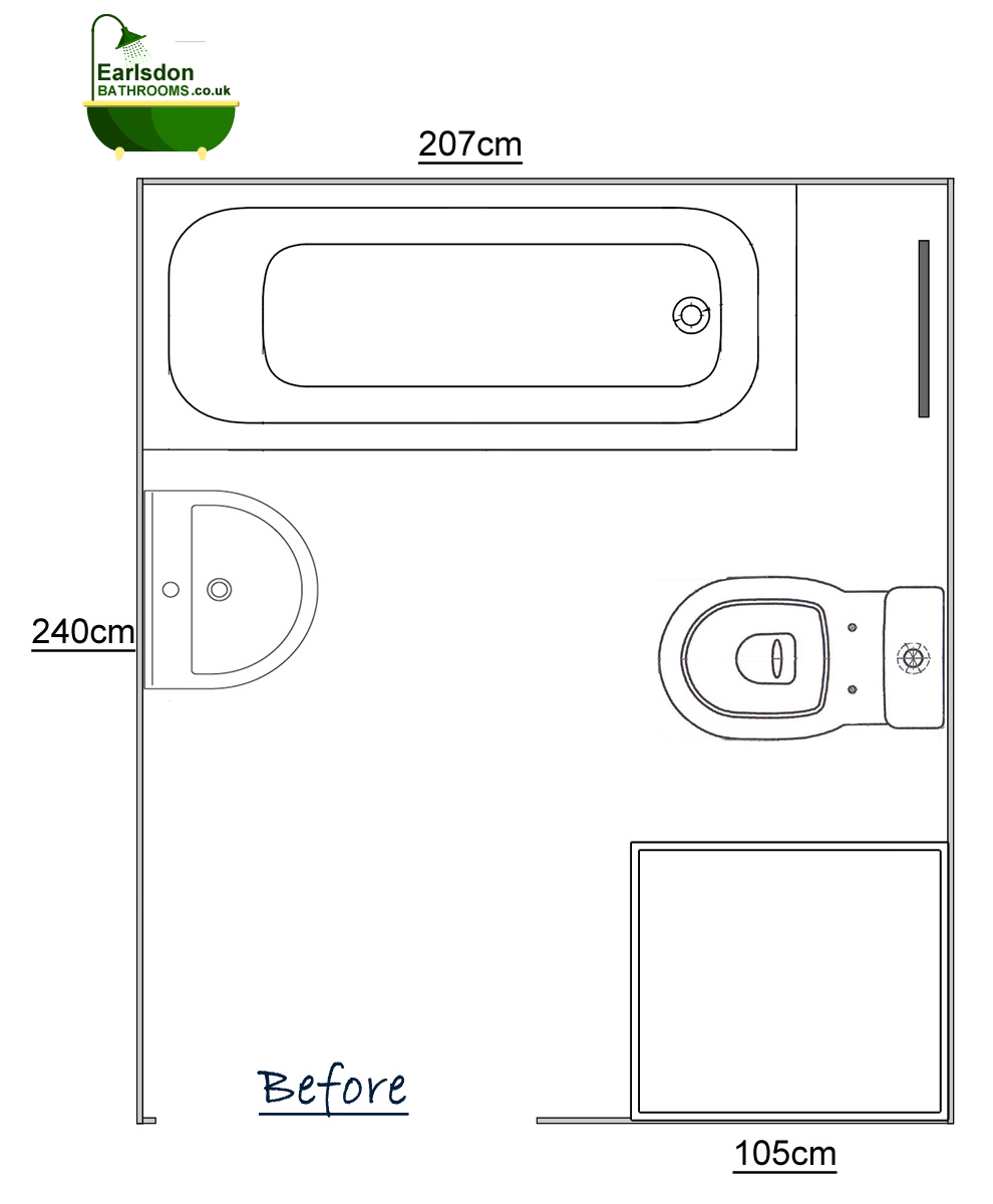 This is a bathroom that we were invited to renovate on Arden Road Kenilworth. The clients wanted to upgrade the bathroom with like for like products being fitted in the same location. The image below shows the original bathroom layout. The bathroom originally had both a straight bath and a rectangle shower enclosure.