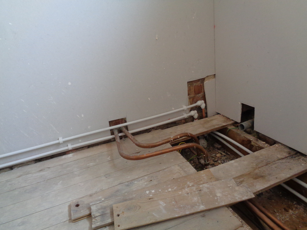 Pipe work from the boiler going to the kitchen below